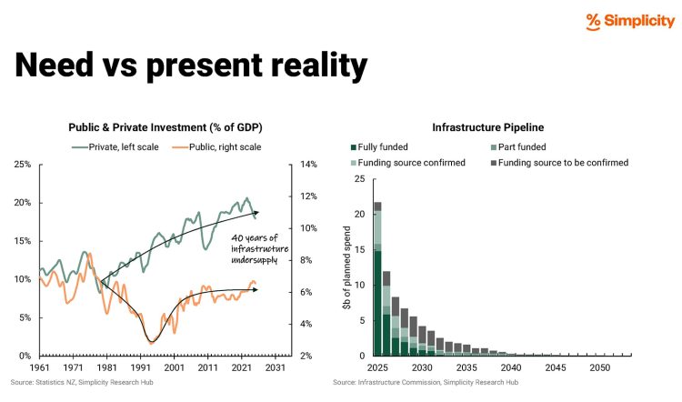 Shamubeel explained that the funded pipeline of infrastructure drops off a cliff almost immediately after the next general government election. He also showed us that public investment has effectively been well under what is required since the 1980s.